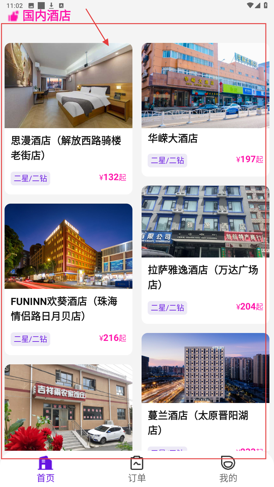 2、在酒店列表,选感兴趣酒店(如思漫酒店),查看基础信息。