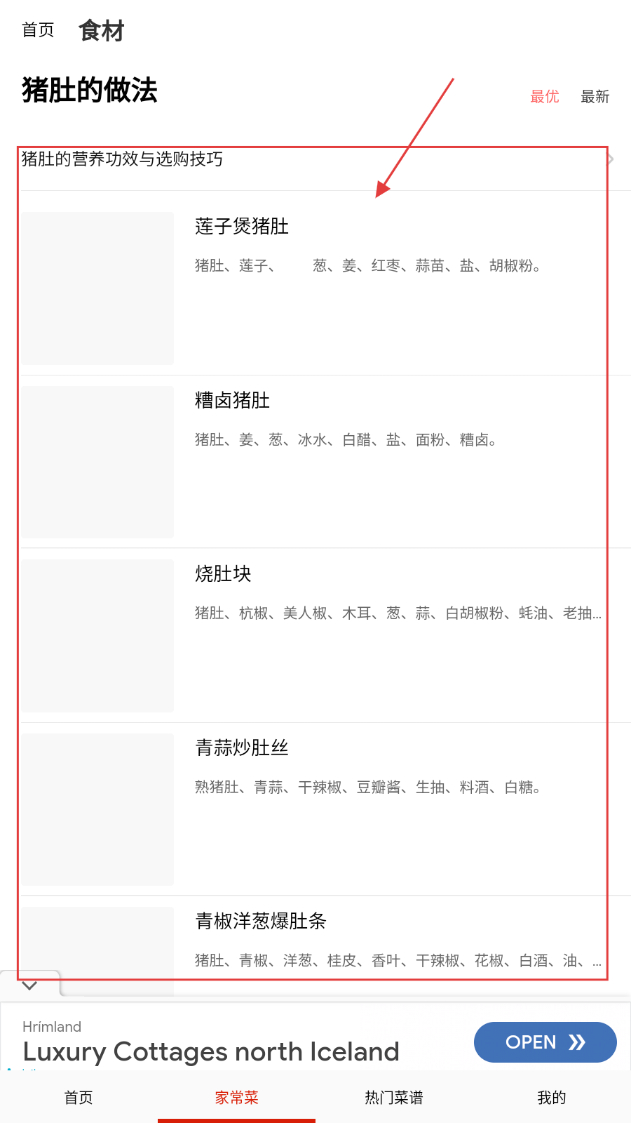 3、选猪肚后,浏览【莲子煲猪肚】等做法,记食材和步骤。