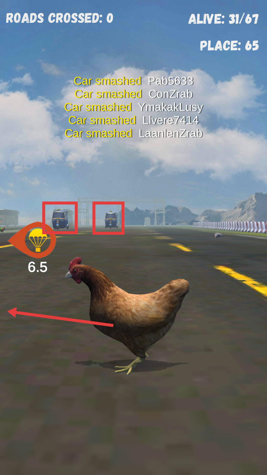 3、遇车辆时预判路线,诱导对手进入车道,借【Car-smashed】淘汰敌人,让【ALIVE】数下降提升自身名次。