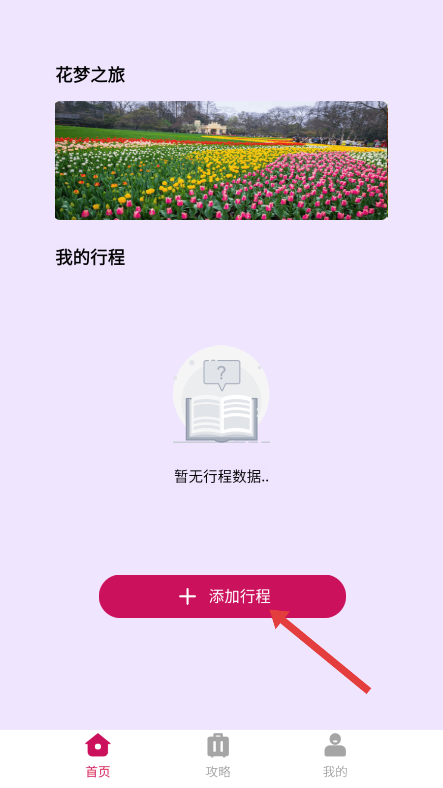 3、切首页,点【添加行程】,规划花梦之旅行程。