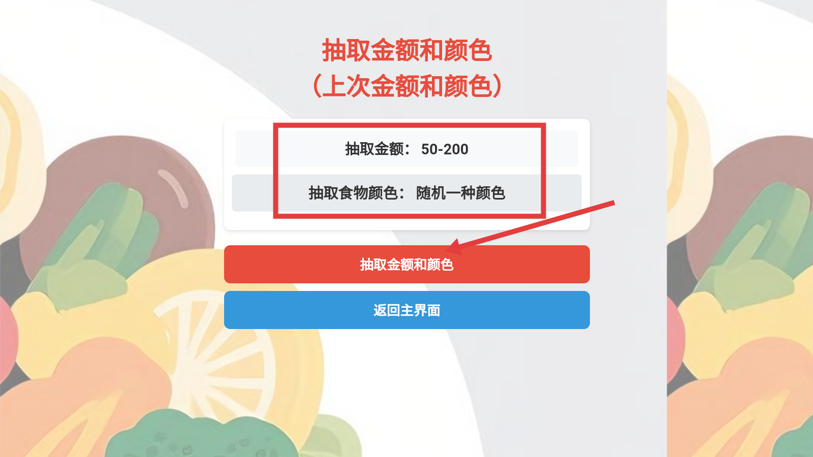 2、在抽取页,点【抽取金额和颜色】,获取50-200区间金额与随机颜色,为采购备资金。