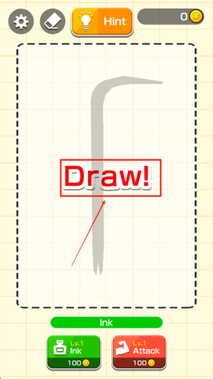 2、绘制武器。在绘制界面,按照提示点击“Draw!”并绘制你的武器。