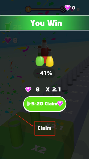 4、完成关卡并领取奖励。在成功到达终点后,点击“Claim”按钮领取关卡奖励,为下一关做准备。