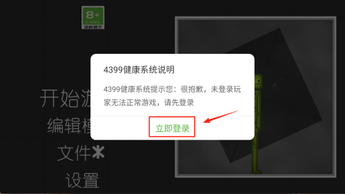4、看到“4399健康系统”提示后,点击“立即登录”即可进入游戏。