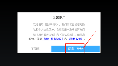 2、阅读温馨提示后点击“同意并继续”接受《用户服务协议》和《隐私政策》。