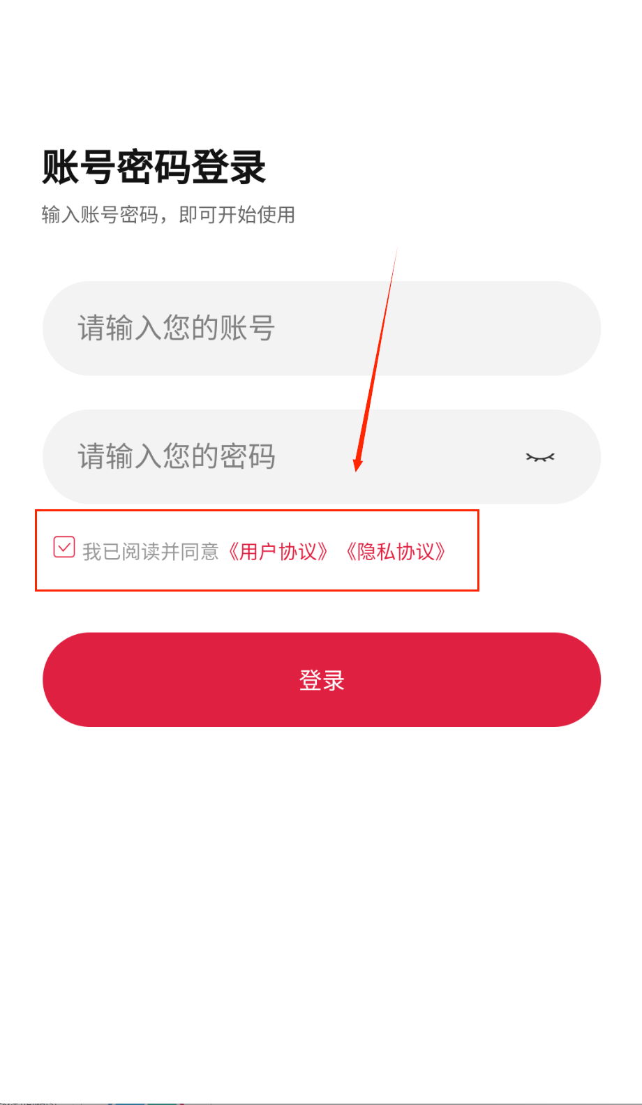 4、最后一定要勾选同意用户协议和隐私政策那个小方框,不然无法登录使用呢。仔细阅读后再勾选比较好。