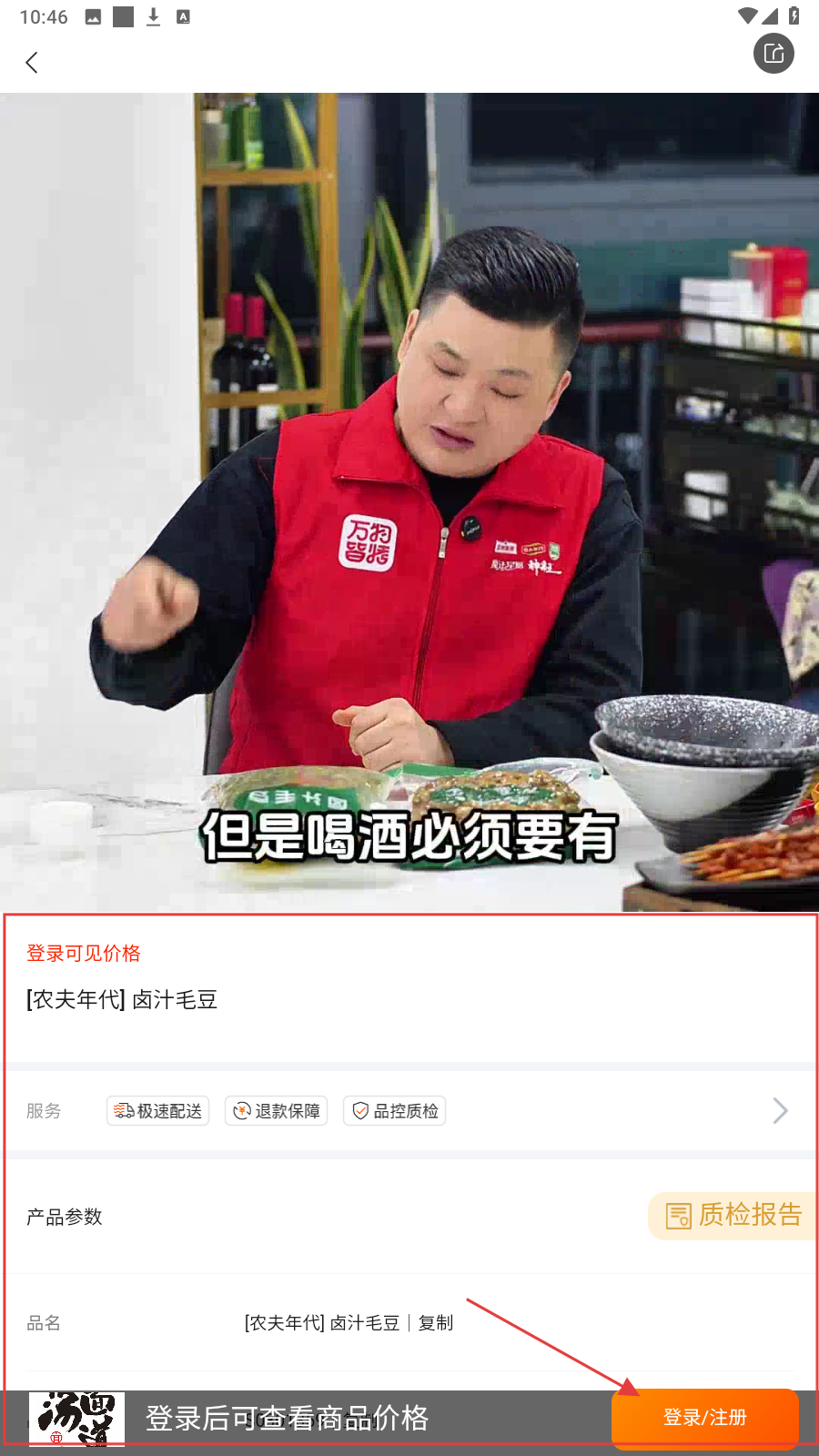 2、凉菜专区选商品,像【农夫年代卤汁毛豆】,点进详情页。