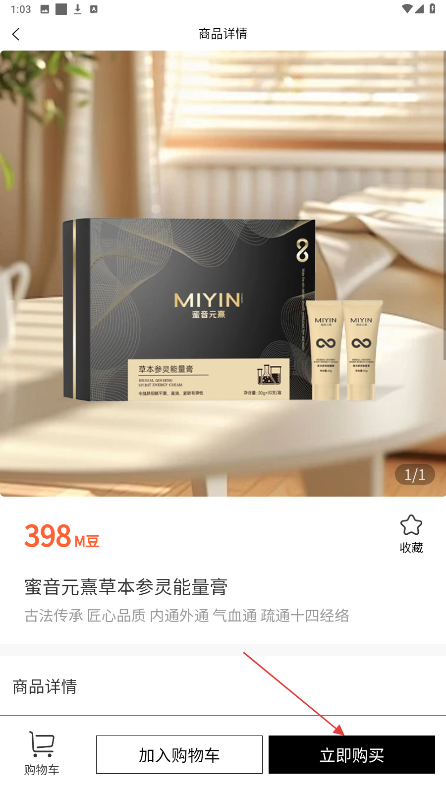 2、商品详情页点【立即购买】,快速下单心仪产品(如能量膏)。