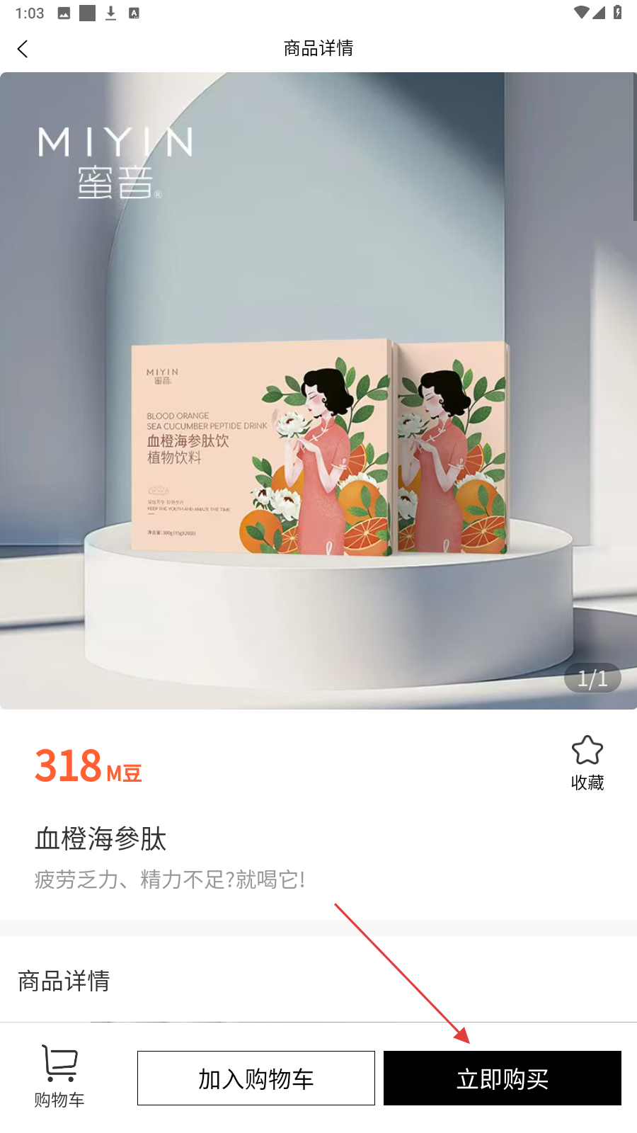 4、在血橙海参肽详情页,点【立即购买】,完成选购流程。