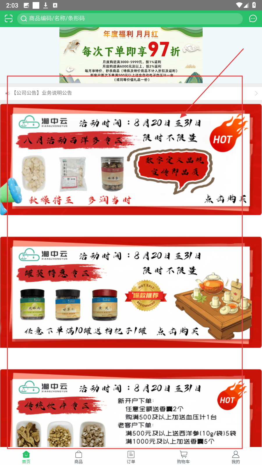1、进入应用首页,看8月西洋参等活动,选感兴趣专区点入。