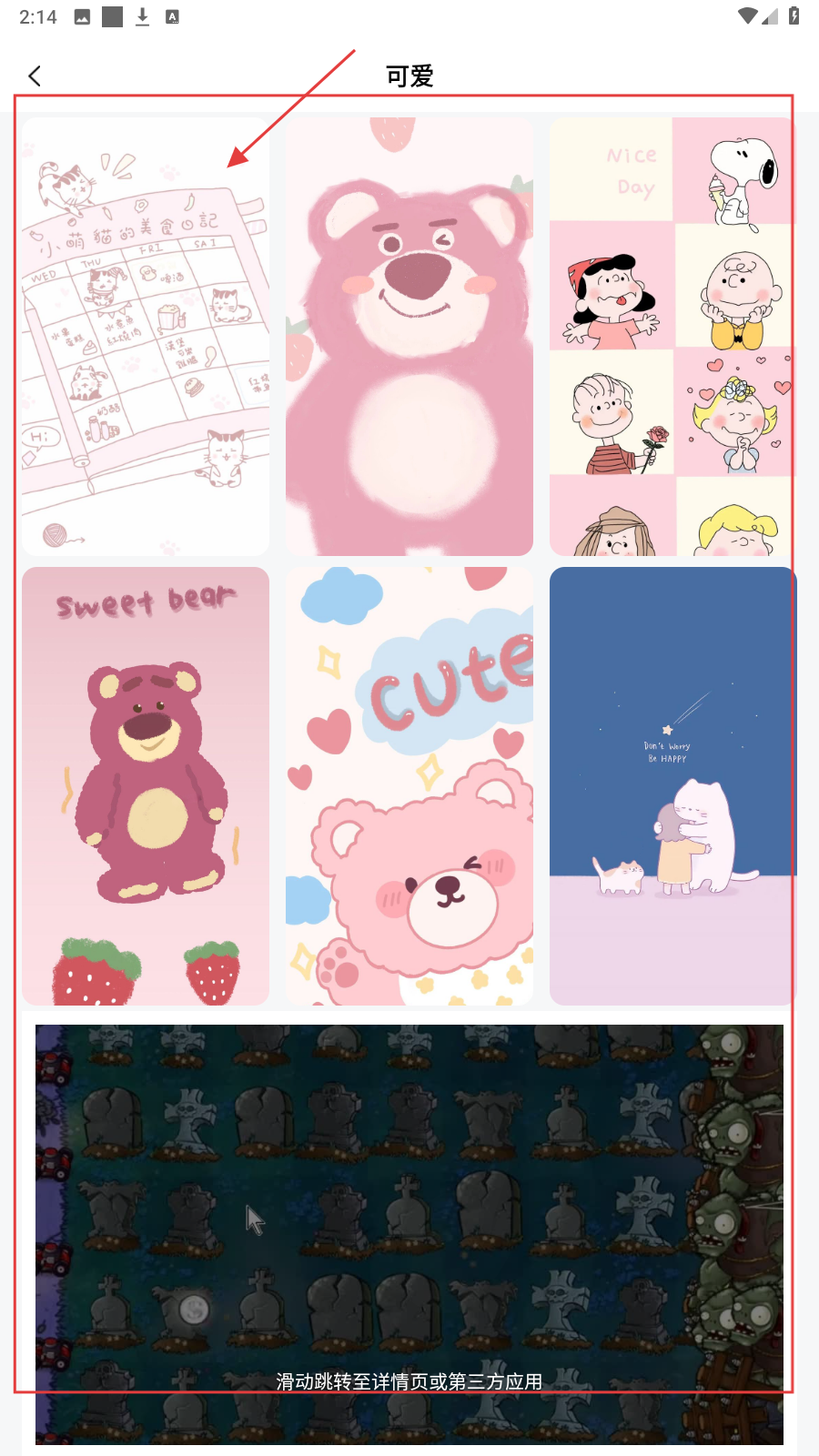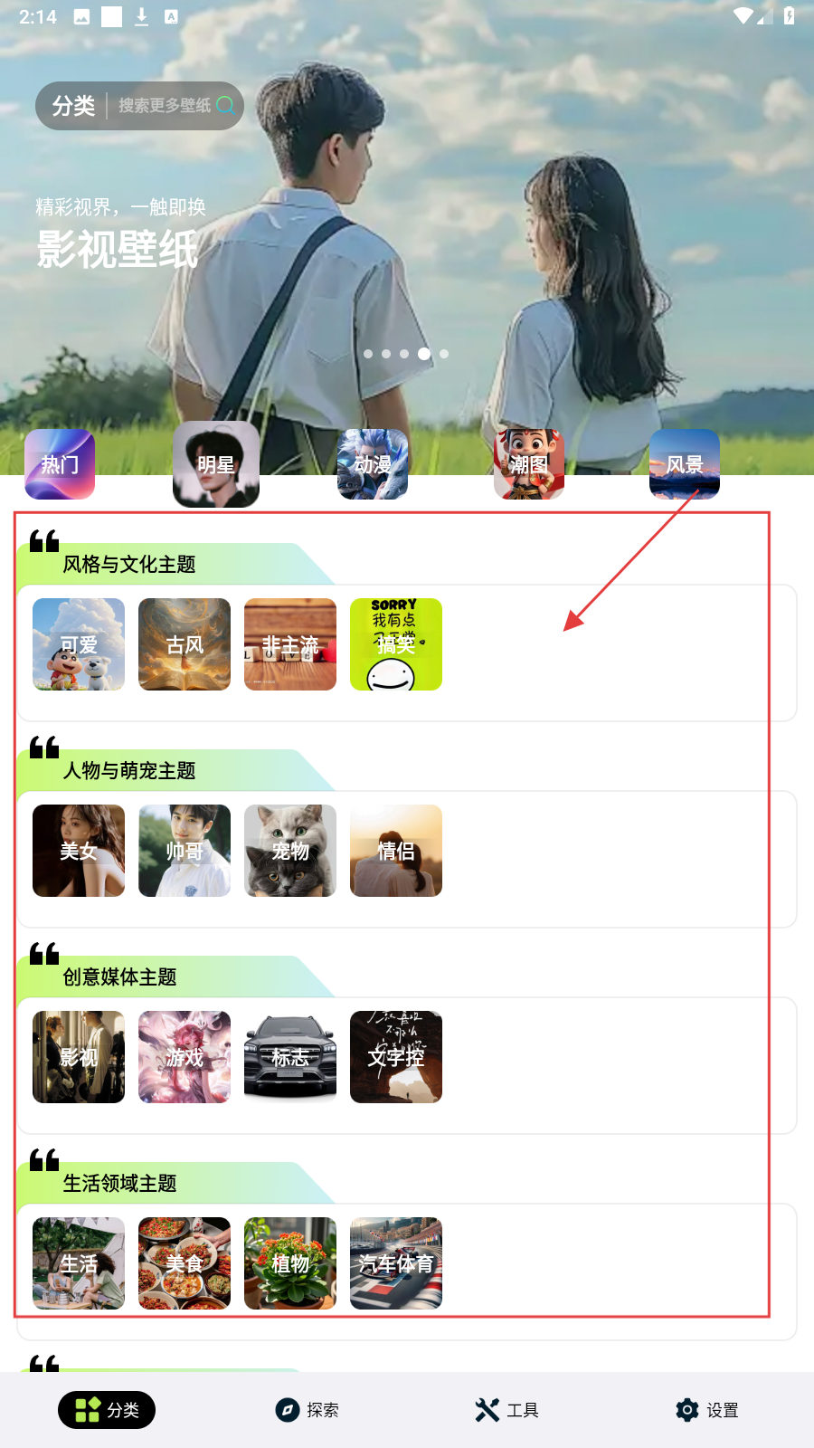 1、进入壁纸应用,在分类页选【风格与文化主题-可爱】等分类,找心仪壁纸。
