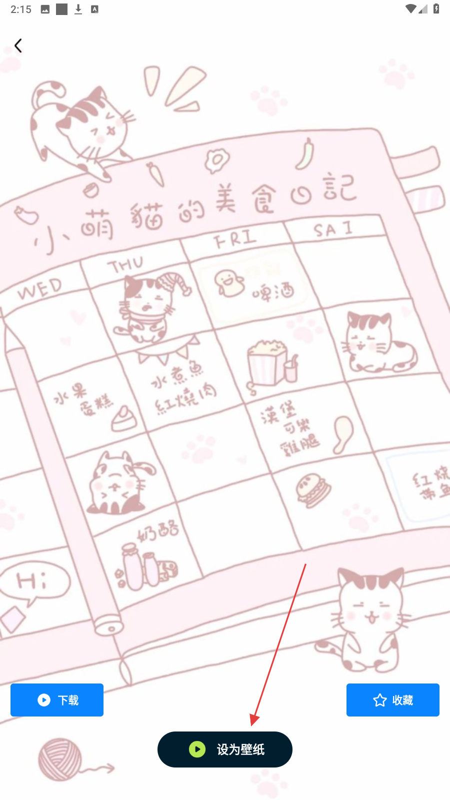 2、进入分类后,浏览壁纸列表,点击【小萌猫的美食日记】这类喜欢的壁纸预览。