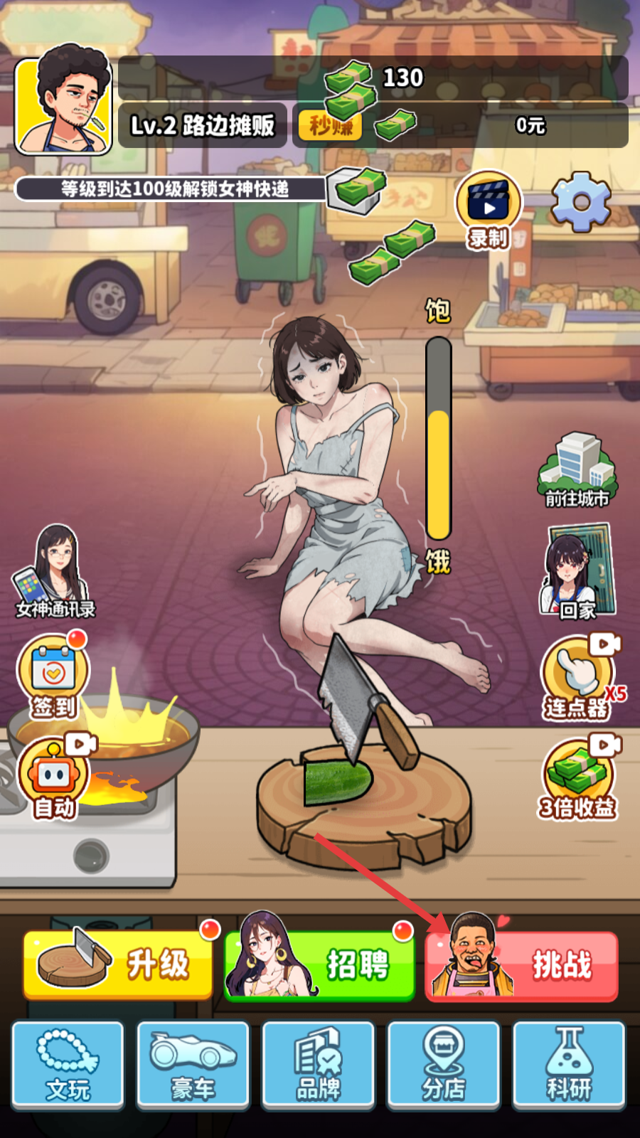2、资源升级循环:收益投入厨具属性强化,提升切菜速度与烹饪品质,优化摊位运作效率。