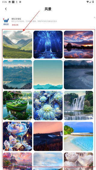 4、进入【风景】分类,这里有山水、奇幻景观等壁纸,按需挑选。