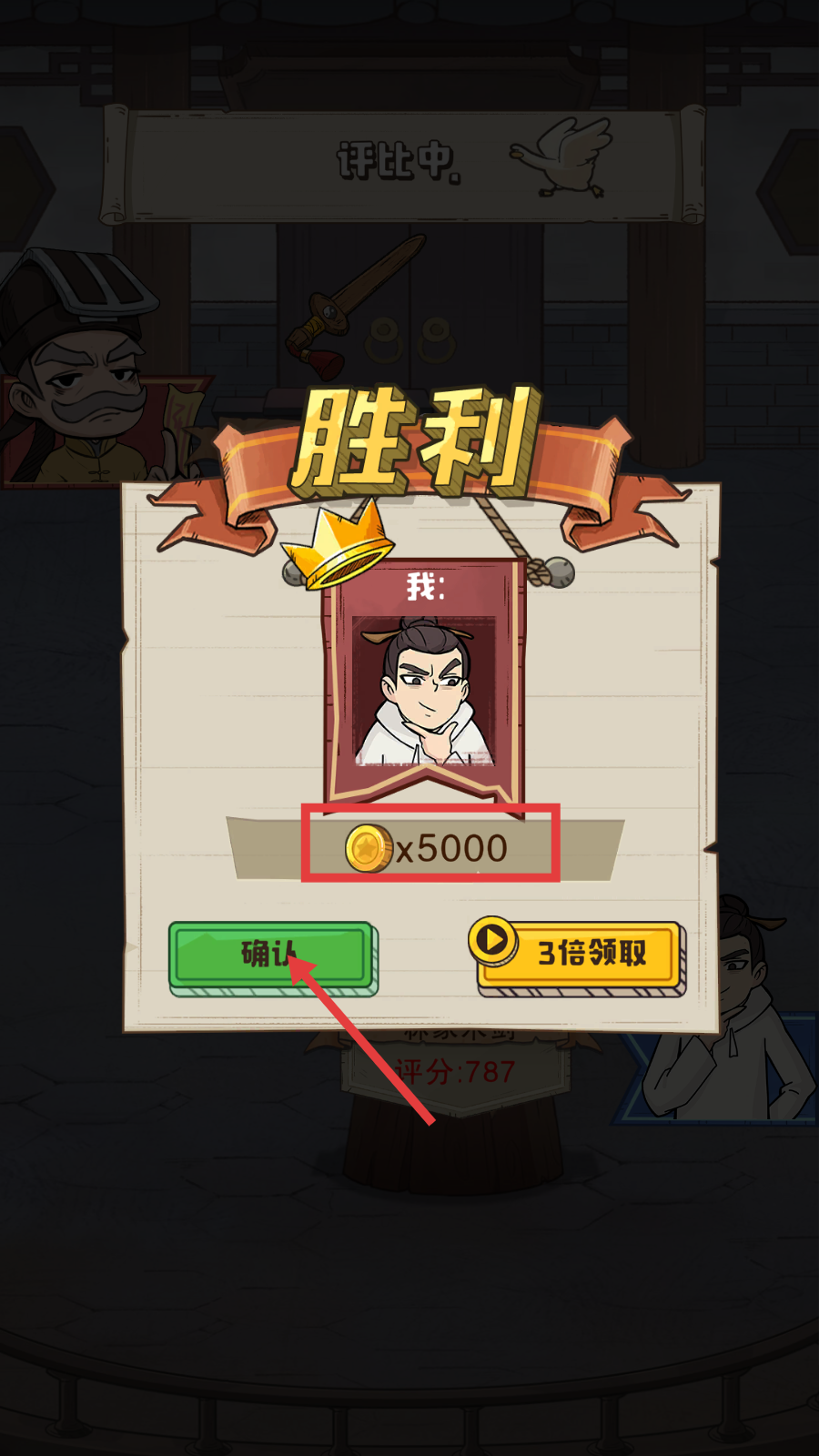 4、战胜后点击【确认】领取【5000金币】,积累资源用于打造物升级或后续挑战。
