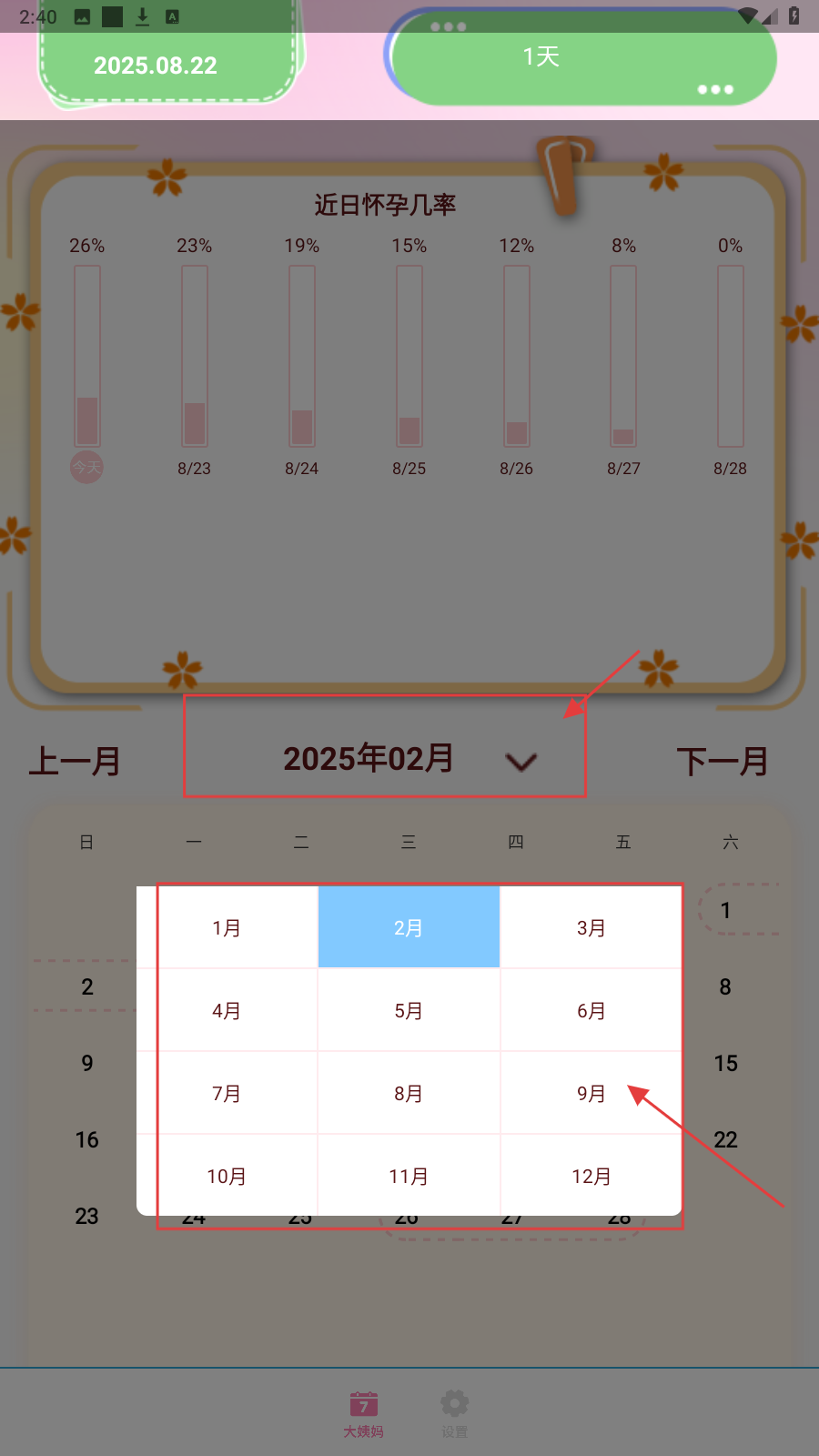 3、点月份下拉框,选不同月份(如【2025年02月】等),回顾往期经期数据。