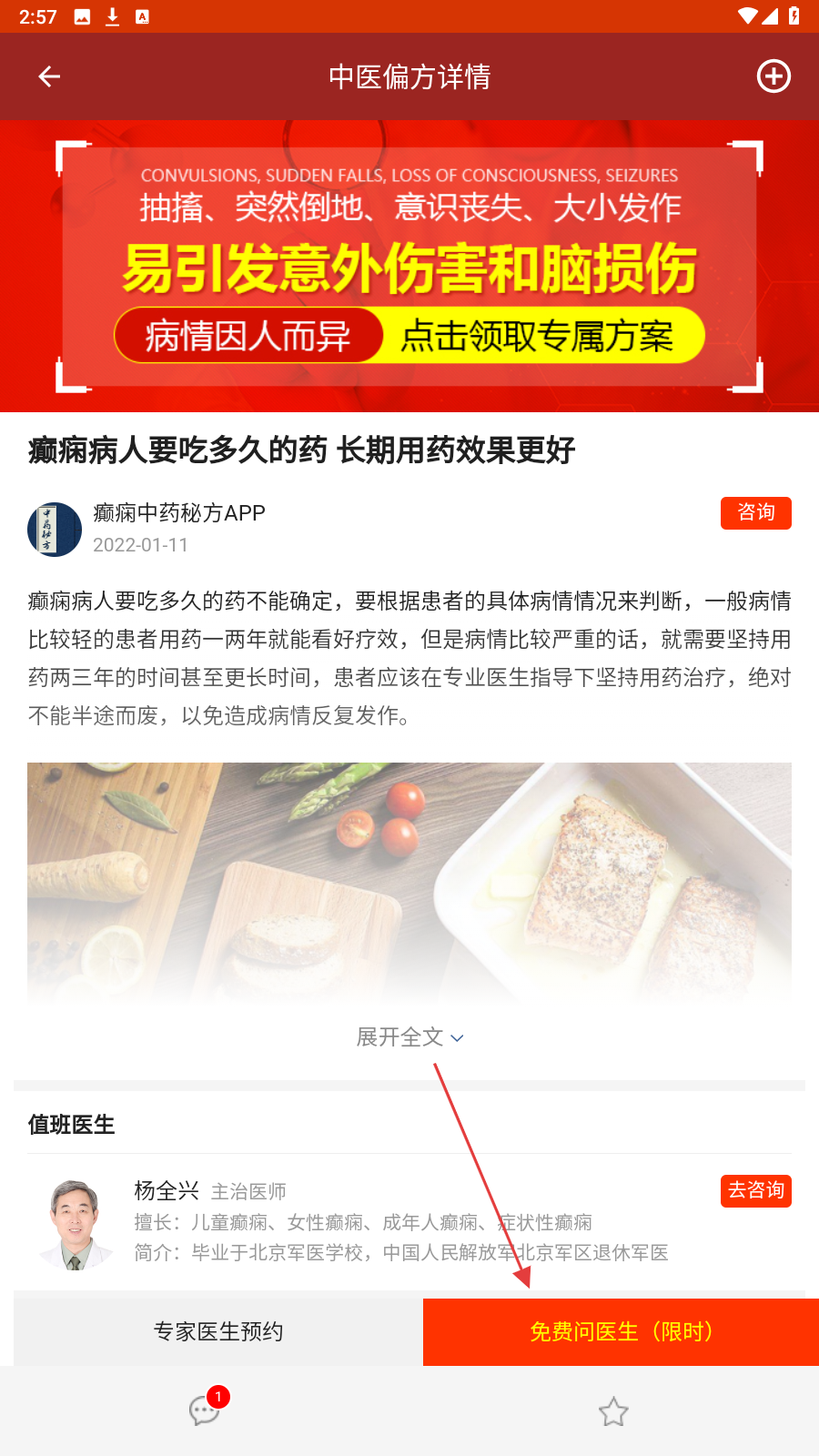 3、看【中医偏方详情】后,若需问诊点【免费问医生(限时)】,和医生沟通。