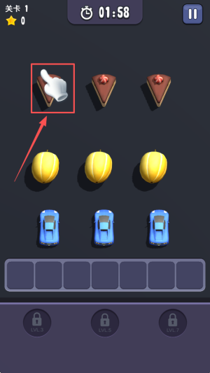 2、在关卡中,点击选中需要合并的物品,例如选中一个冰淇淋。