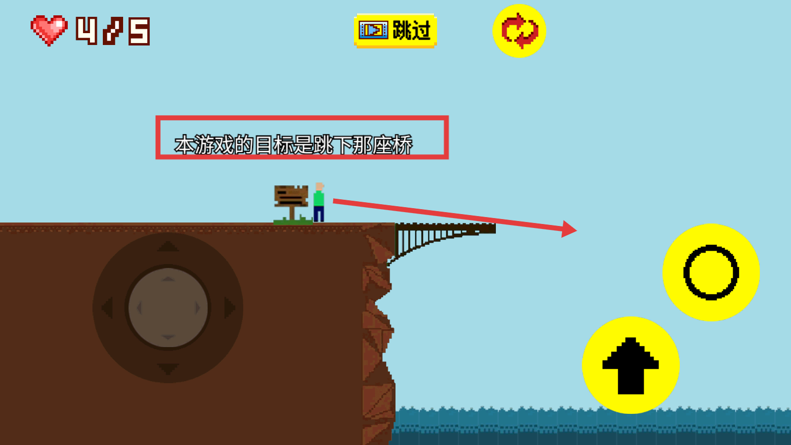 3、按照提示“跳下那座桥”,引导角色抵达桥边并跳下,完成关卡目标。