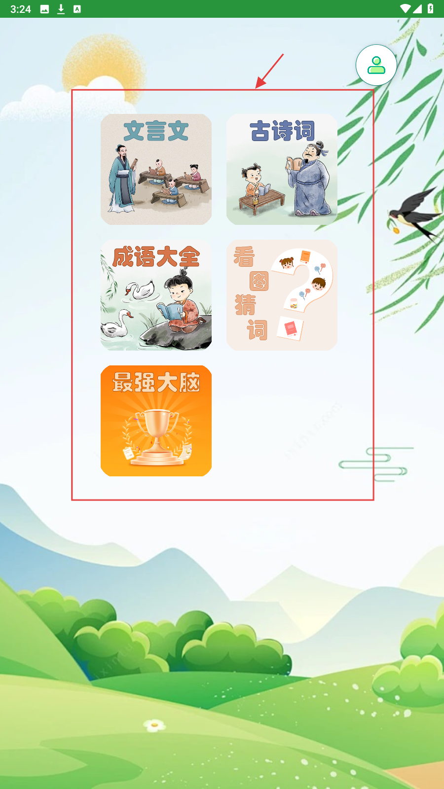 2、互动学习模式:通过看图猜成语、成语闯关等趣味益智玩法,让古文学习变得生动有趣,帮助用户在游戏中加深记忆,提升学习效果。