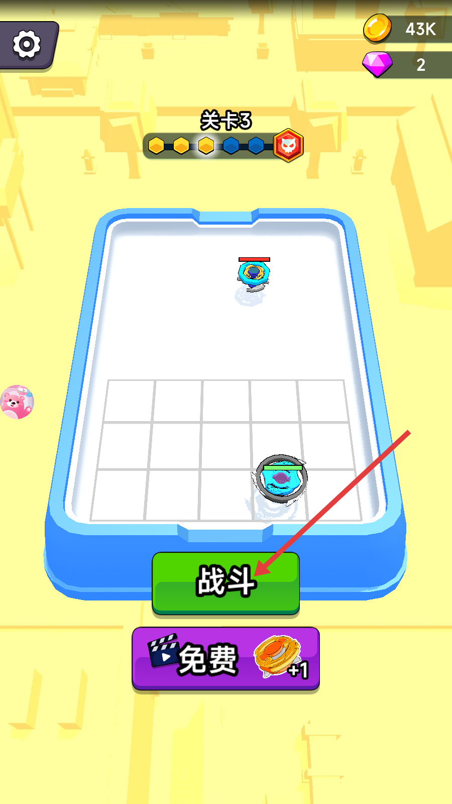 2、进入【关卡3】,点击绿色【战斗】按钮,开启陀螺对战。