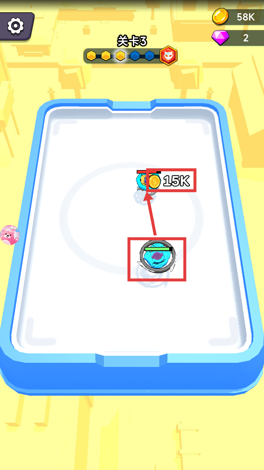 3、战斗中操控陀螺攻击敌方,击败后获取【15K金币】。