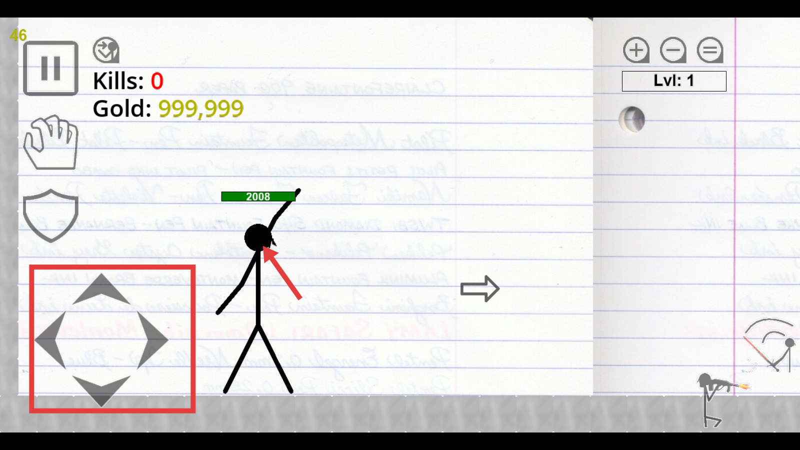 2、左侧菱形摇杆控制移动,关注角色头顶【2008血量】,准备战斗。