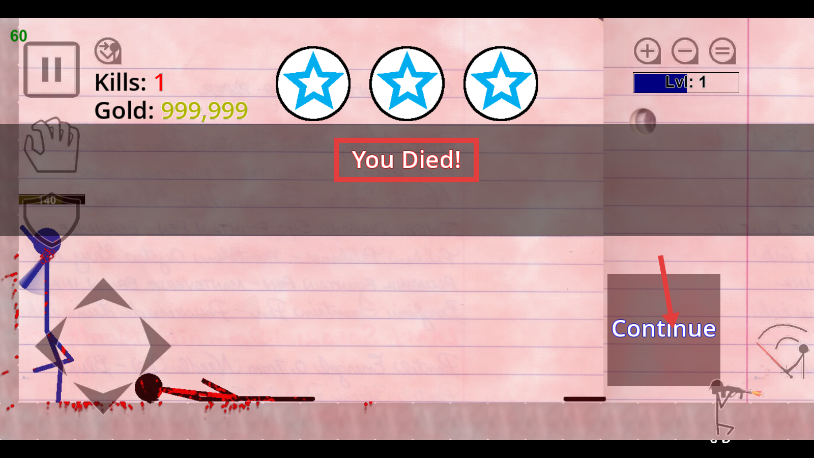 4、若战斗失败(提示“YouDied!”),点击右侧【Continue】重新挑战。