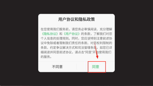 2、阅读并同意《用户协议》和《隐私政策》,点击“同意”继续。