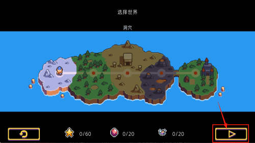 3、在选择世界界面点选“涡穴”,确认0/60、0/20、0/20的进度后进入下一页。