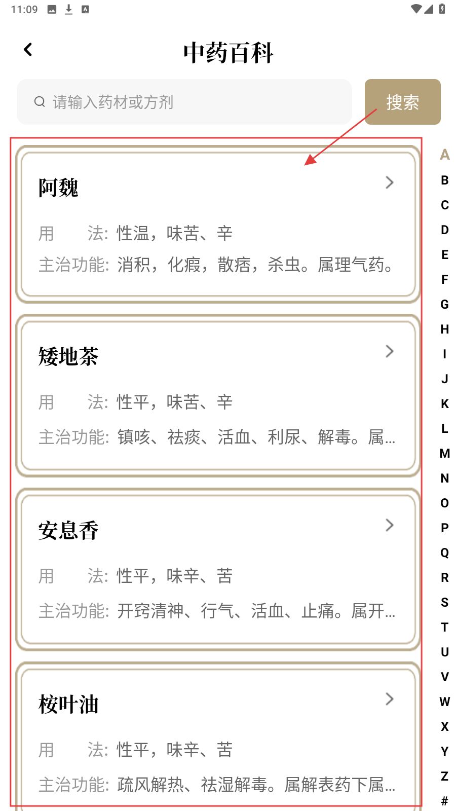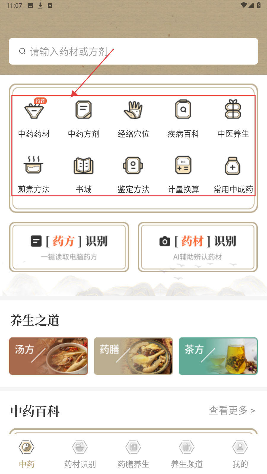 1、进入应用,选功能模块(如中药药材),开启中医知识学习,可搜药材/方剂。