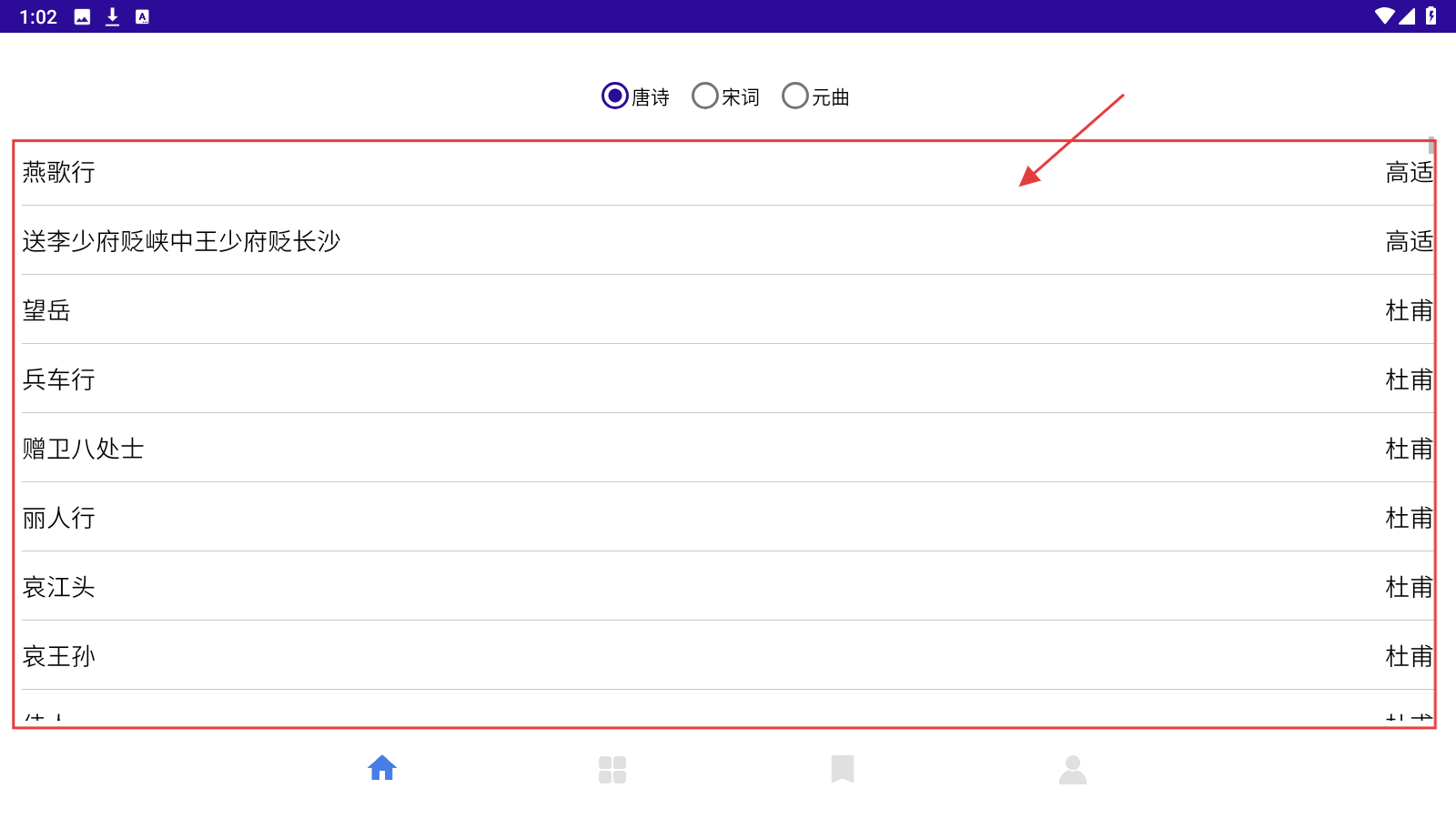 4、聚焦特定作者,如【杜甫】,浏览其作品列表,从【望岳】开始系统学习该作者诗作。