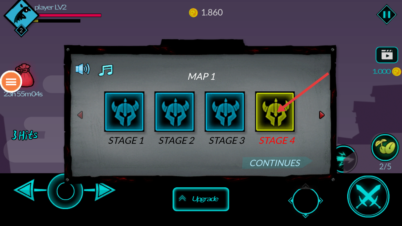 1、在关卡界面选择【STAGE-4】,开启Map1第四关冒险,挑战更强敌人检验角色实力。