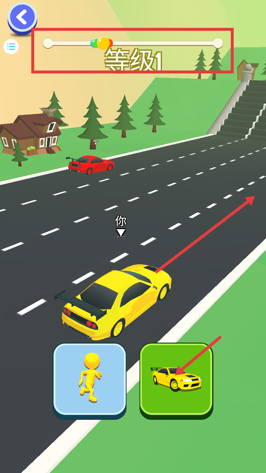 3、等级1赛道切换【汽车形态】,借助载具速度优势,在公路上超越对手,冲刺关卡终点。