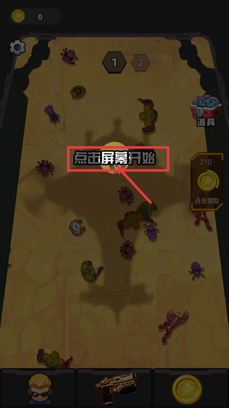 1、点击【点击屏幕开始】,进入关卡1,直面场景内多样怪物,开启生存挑战。