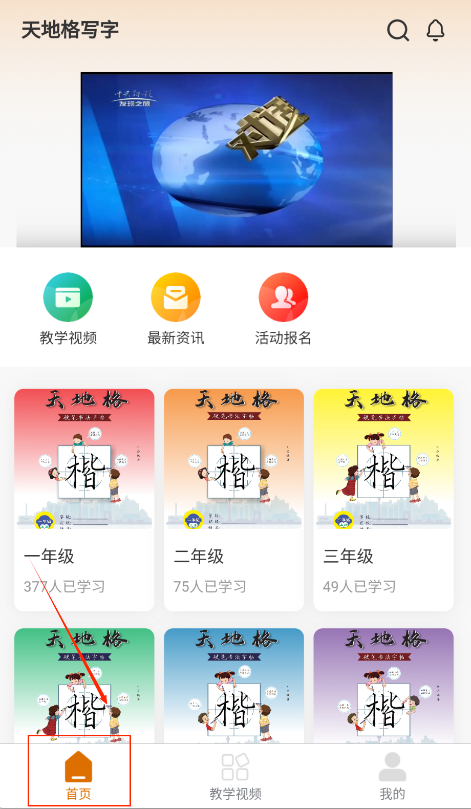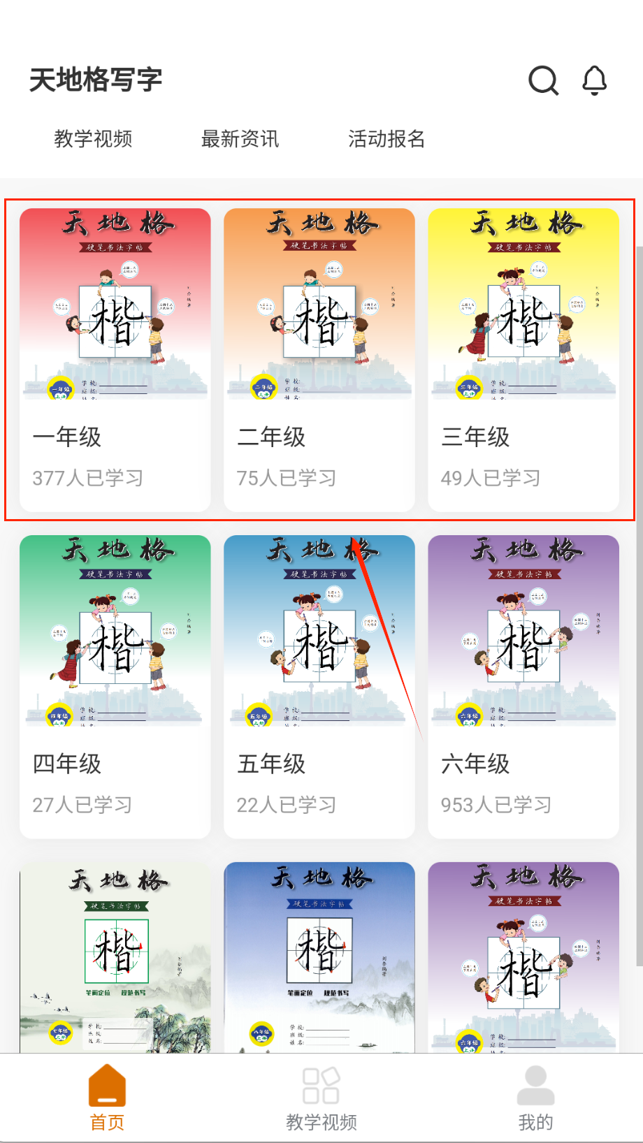 1、下载安装后选择适合的年级和书写水平,系统会推荐相应的教学内容。在首页浏览各类功能模块,了解软件布局。