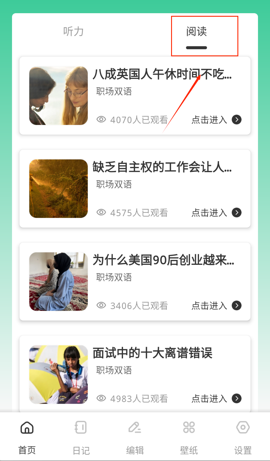 3、阅读题库持续扩充经典文学作品和期刊文章,支持自定义生词本。阅读速度测试评估理解效率,提供提升建议。