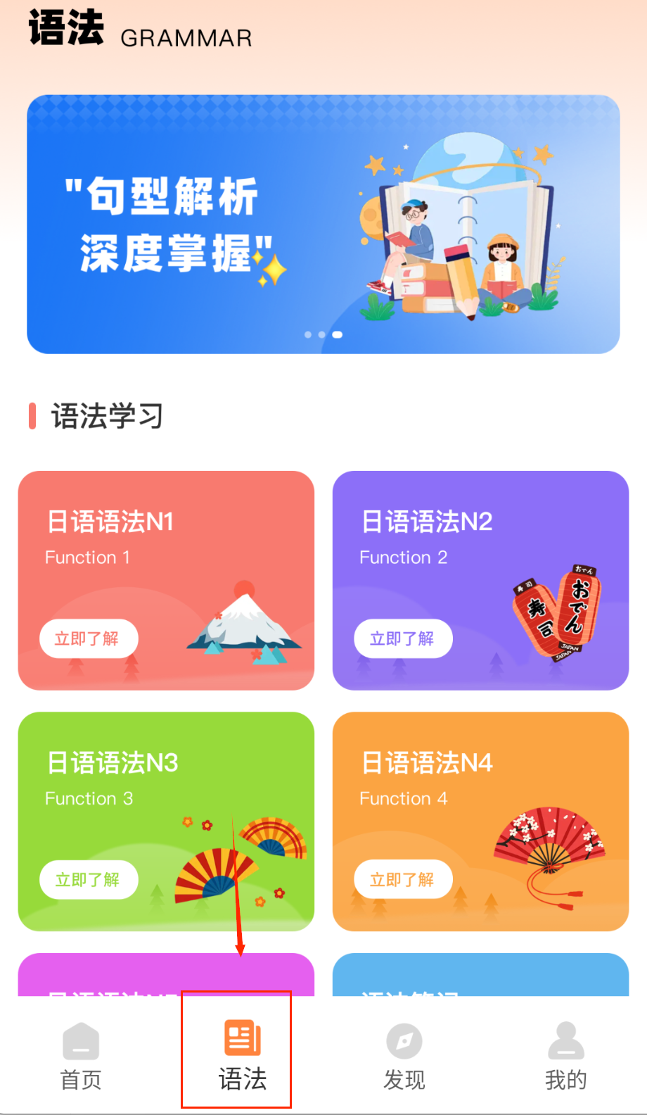 1、下载安装后选择适合自己日语水平的学习阶段,系统会推荐相应的学习内容。在首页浏览各类功能模块,了解软件布局。