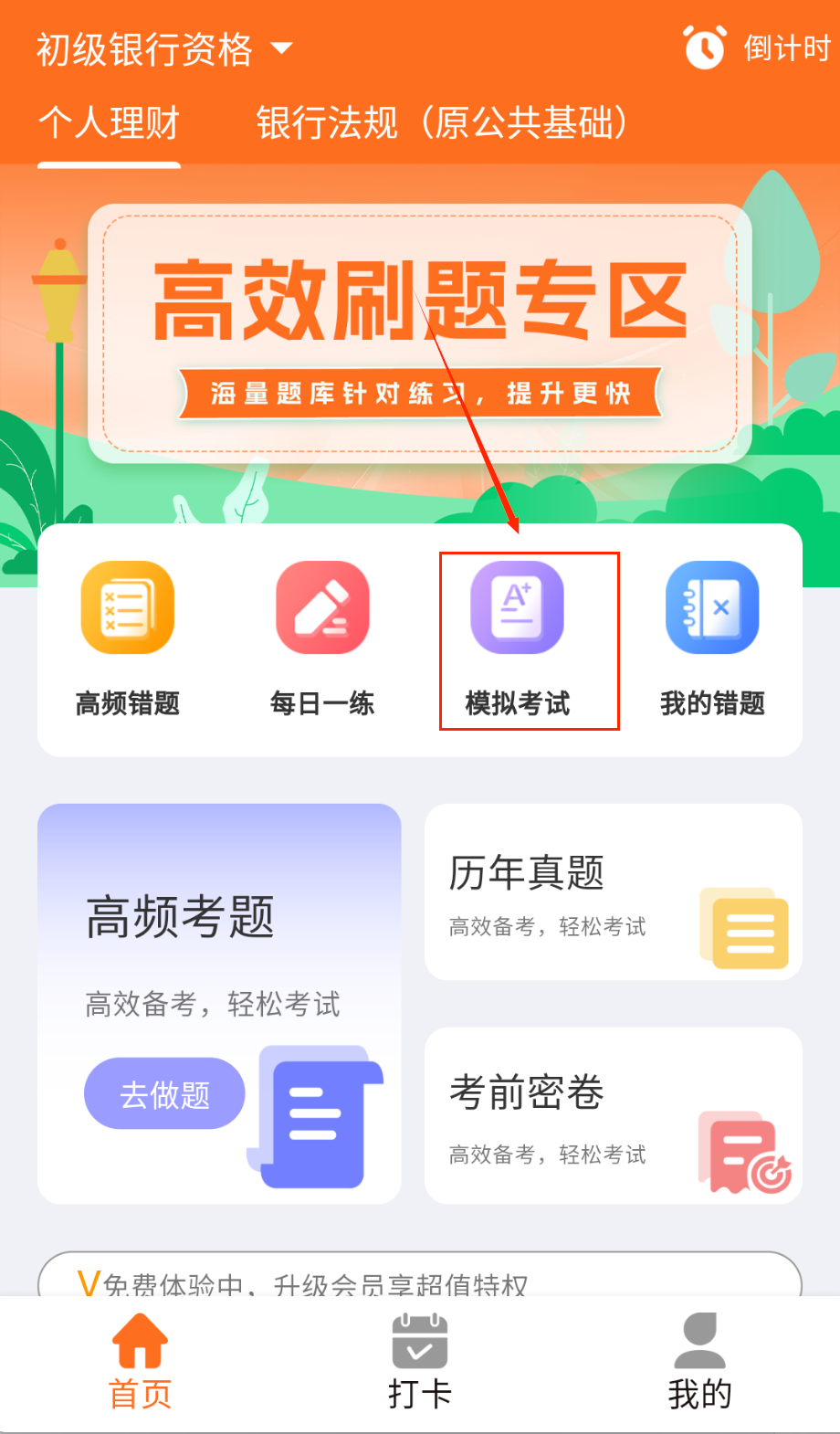 1、下载安装后选择报考科目和考试类型,系统会推荐相应的学习计划。在首页浏览各类功能模块,了解软件布局。