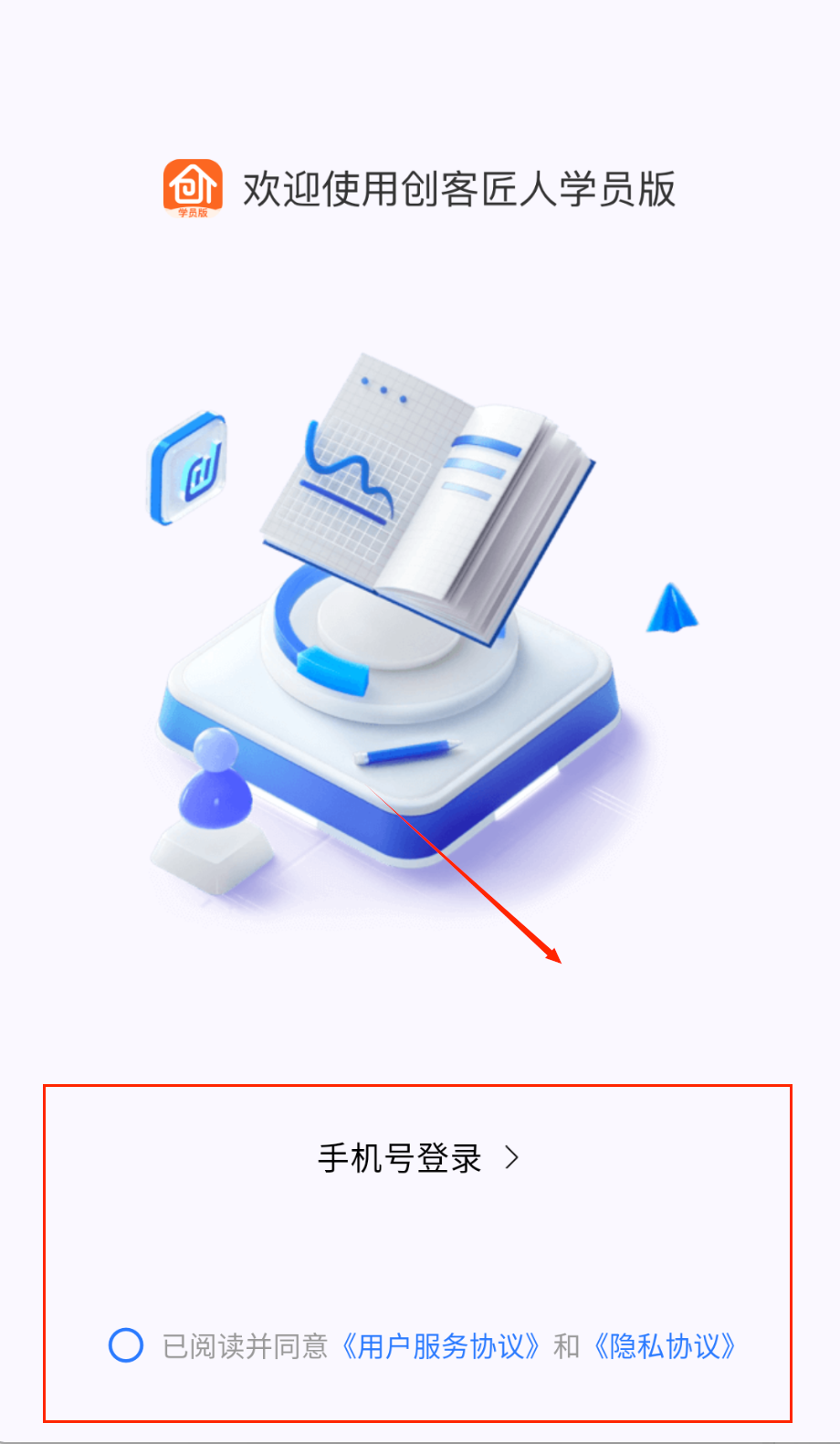 1、打开软件先看看欢迎页面呢,找到手机号登录按钮。注意要勾选同意用户协议那个小方框哦,不然无法继续操作。