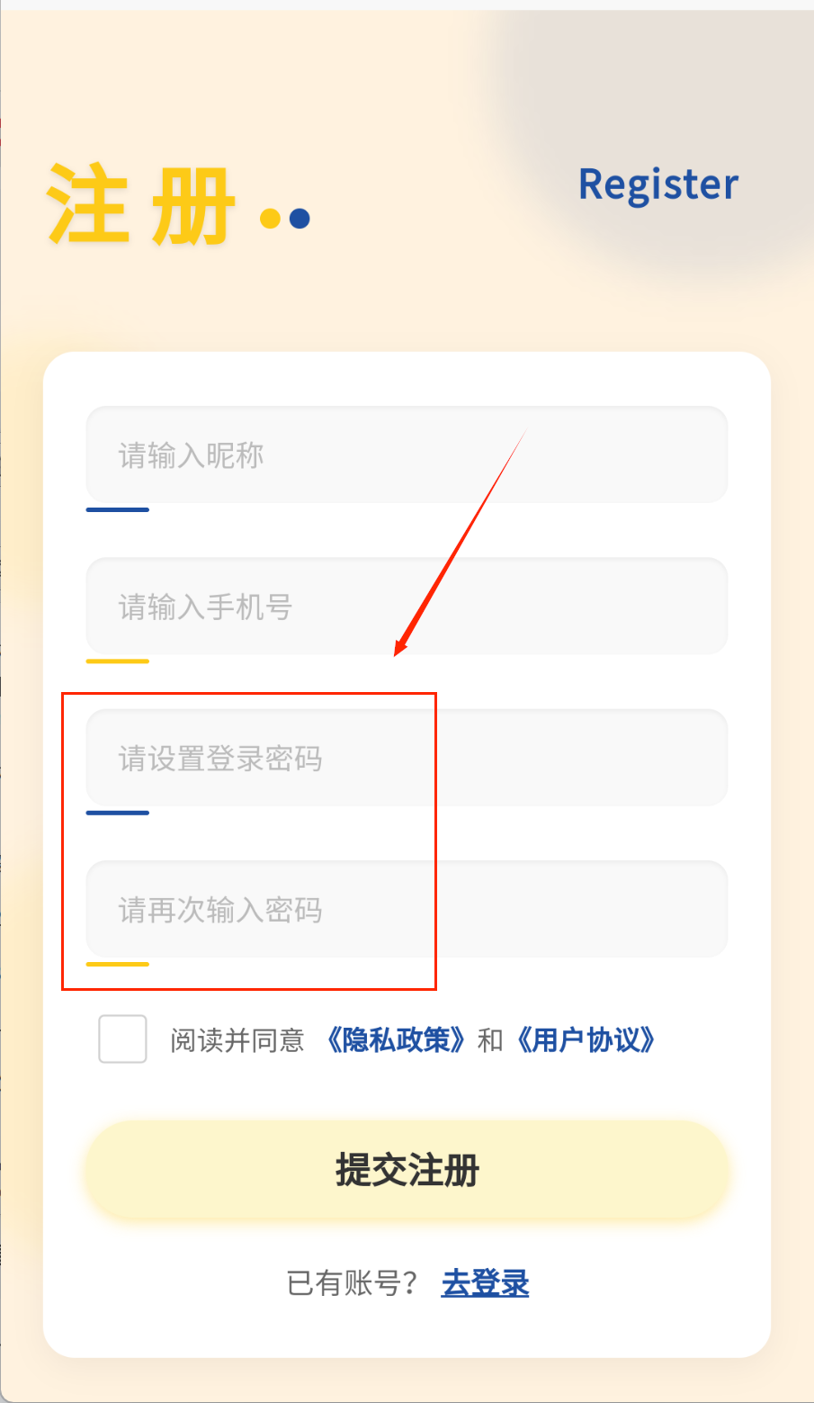 2、设置登录密码时要仔细些,两次输入要保持一致。记得勾选同意协议的小方框,不然无法完成注册。