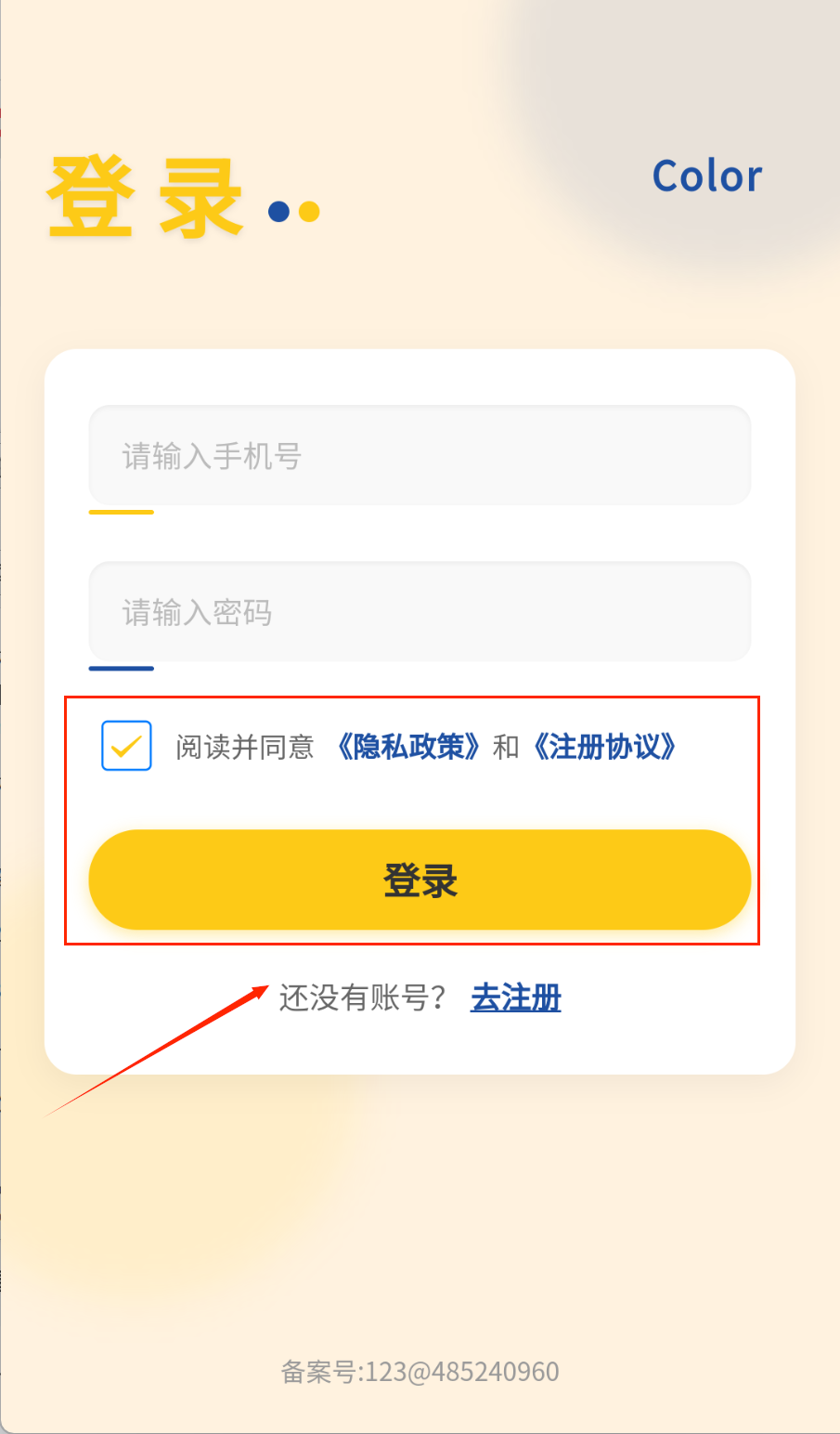 3、登录时输入手机号和密码,注意区分大小写呢。那个黄色登录按钮很醒目,可以点击就能进入软件。