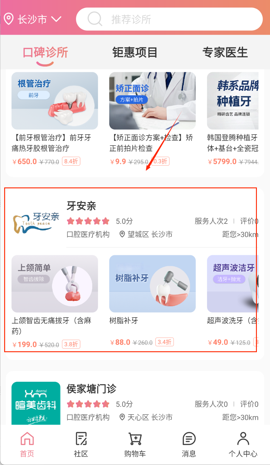 1、服务分类提供洗牙、补牙、矫正等专业项目,支持按症状和需求筛选。项目详情页展示治疗流程、注意事项和参考价格,帮助用户了解。