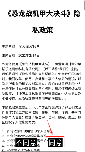 1、阅读并同意《隐私政策》,点击“同意”正式进入游戏主界面。