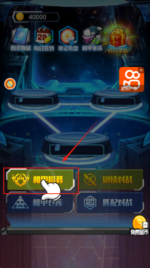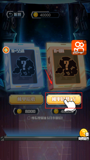 3、进入“机甲招募”界面,选择“机甲招募×5”消耗8000钻石十连抽,必得SSR或UR级新机甲。