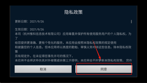 2、阅读《隐私政策》后,轻触“同意”按钮,正式授权并继续。