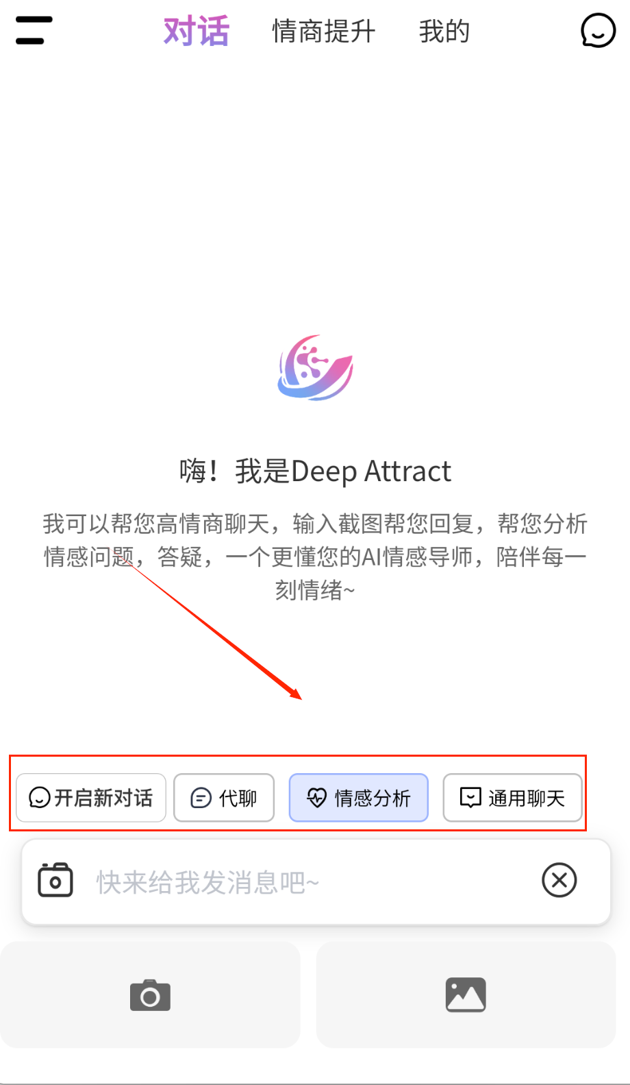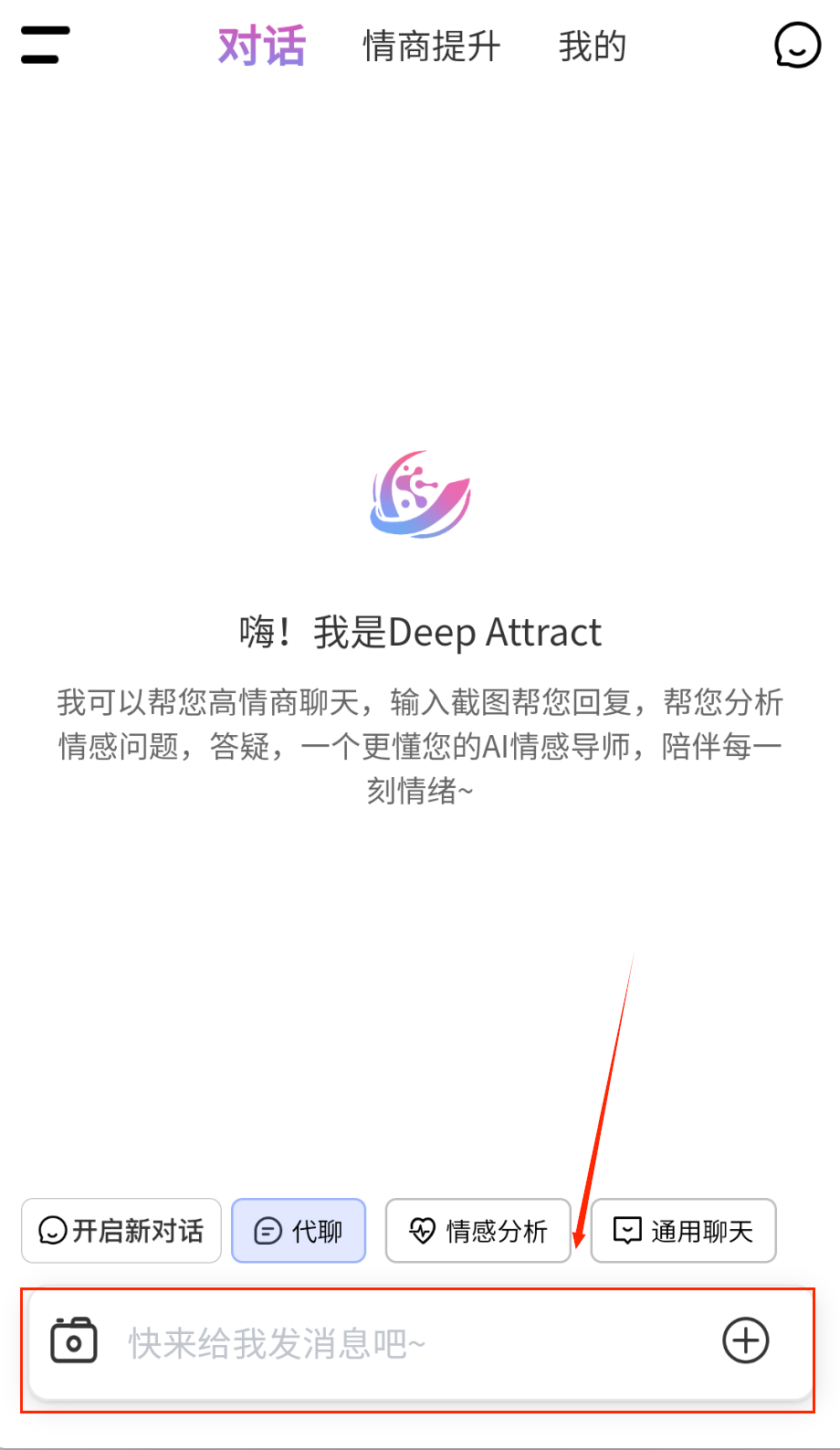 Deep Attract通过AI技术分析聊天场景,提供高情商话术建议和情感交流指导,支持聊天记录智能解析、情感状态评估、恋爱场景模拟等功能,内置海量话术库和教学视频资源,帮助用户在社交和恋爱场景中改善沟通方式,提升互动质量,打造更自然流畅的对话体验。