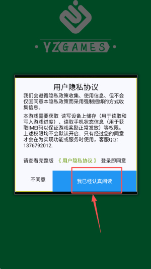 1、阅读并同意《用户隐私协议》,点击“我已经认真阅读”按钮继续。