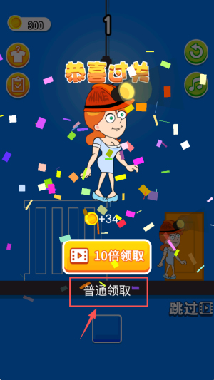 4、成功过关后,点击“普通领取”按钮,领取奖励并继续游戏。