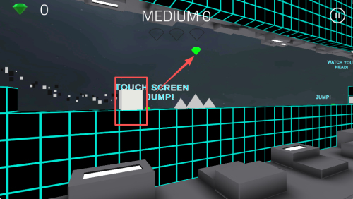 3、根据提示“TOUCH SCREEN JUMP!”点击屏幕,使角色跳跃。